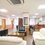 施設の玄関は段差がなく、車椅子をご利用の方でも快適にお進みいただけます。廊下やフロアにも手すりを設置していますので、安心してお過ごしください。アットホームな雰囲気の談話室ではソファーに座り、テレビを見たり談笑したり、のんびりとお過ごしいただけます。